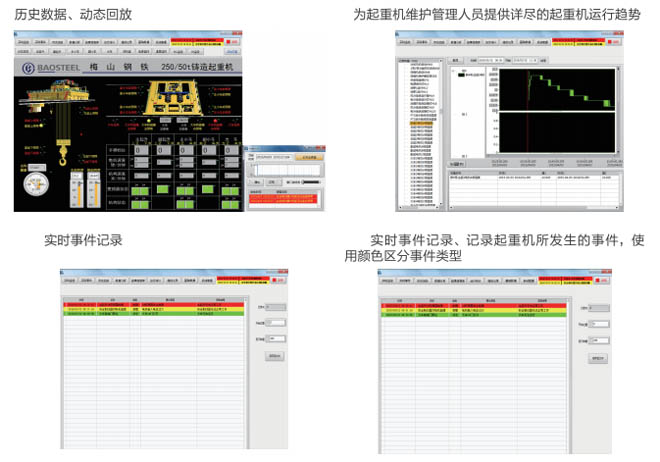 •- 通過起重機(jī)安全監(jiān)控管理系統(tǒng),運(yùn)行管理人員可以通過系統(tǒng)對起重機(jī)運(yùn)行中出現(xiàn)的故障進(jìn)行 查詢和處理;對設(shè)備及元器件進(jìn)行系統(tǒng)管理;指導(dǎo)定期對系統(tǒng)進(jìn)行維修和調(diào)試。系統(tǒng)具備以 下功能:實(shí)時狀態(tài)顯示、實(shí)時報警顯示、歷史記錄查詢、部件壽命監(jiān)測、事故診斷分析、數(shù) 據(jù)統(tǒng)計(jì)及權(quán)限設(shè)定管理等。